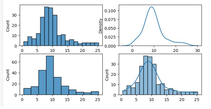 histplot(),kdeplot(),displot(): muestran cómo se distribuyen los datos.